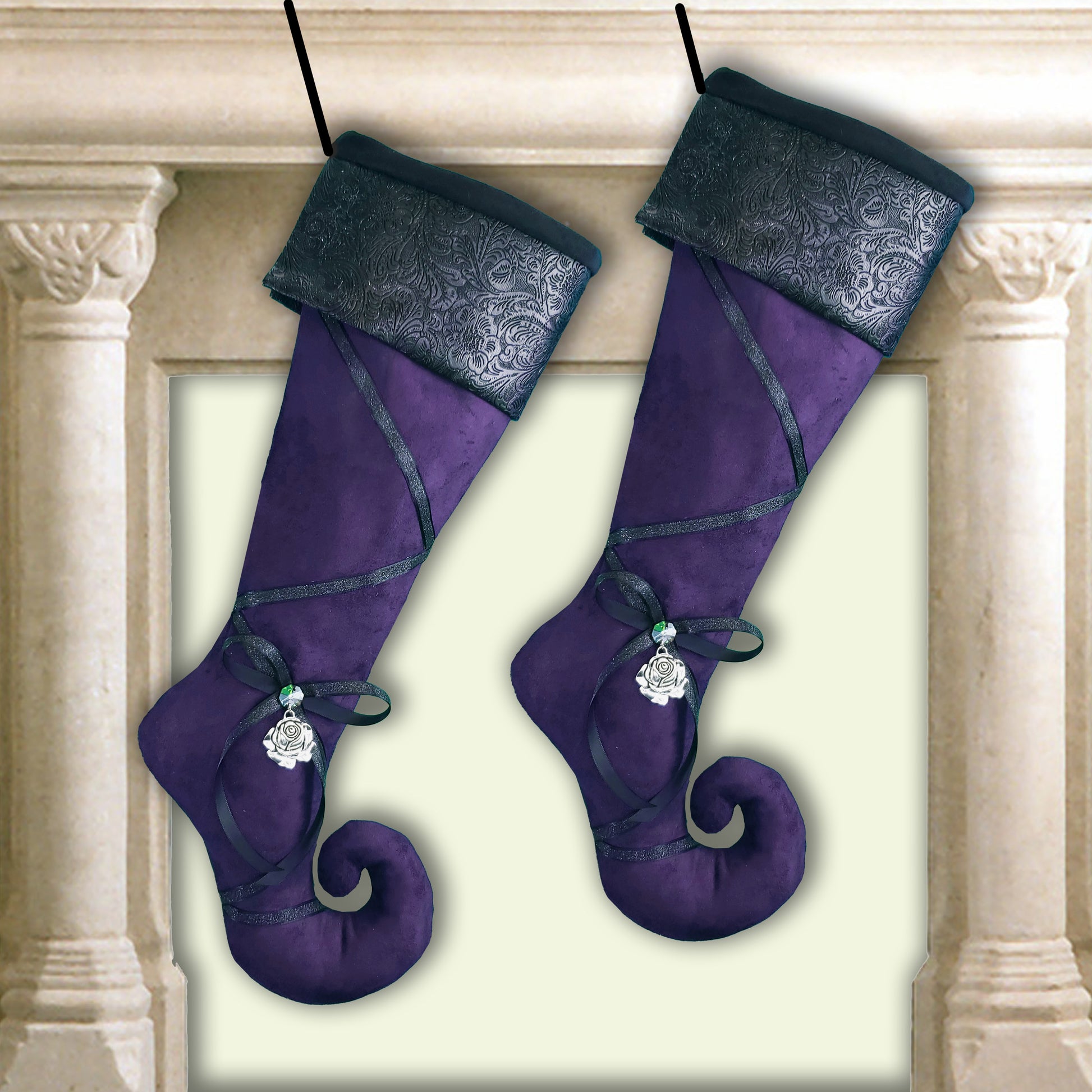 Handmade Purple Faux Suede Jester Christmas Stocking: Gothic Yule Decor